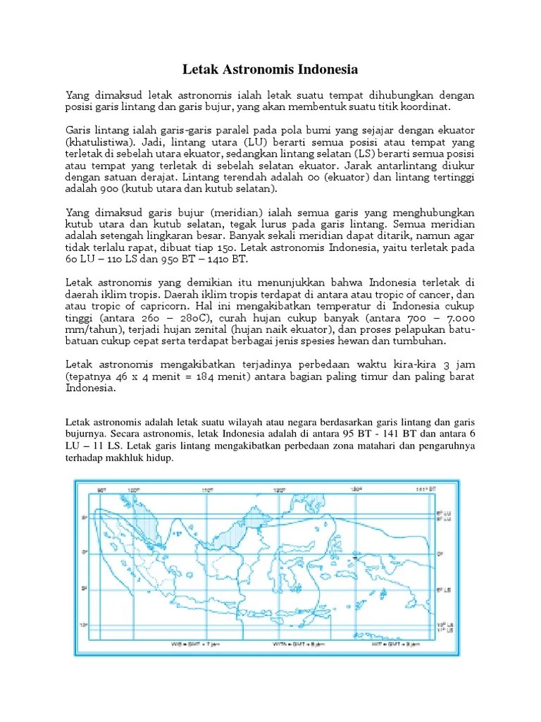 Namun, apa itu yang dimaksud letak astronomis? Berikut ini adalah penjelasan lengkap letak astronomis indonesia dan batas wilayah indonesia secara astronomis, yuk, simak! Berikut letak astronomis indonesia secara wilayah:. Letak astronomis adalah letak suatu tempat berdasarkan garis lintang dan garis. Perlu diketahui, letak astronomis dan.